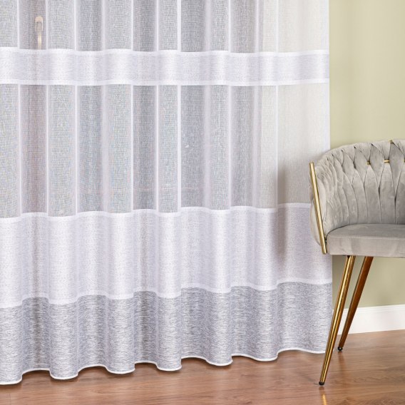 Firanka fantazyjna z ołowianką, wys. 300cm, kolor 007 biały z jasnoszarymi pasami 001827/OLO/007/000300/1