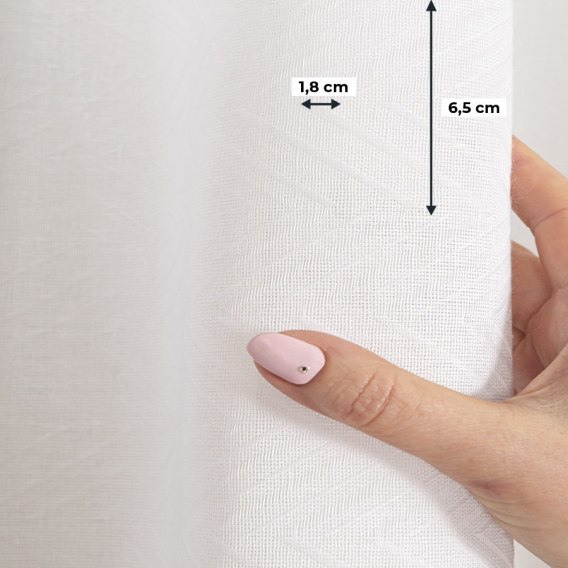 Uniwersalna firanka odpowiednia do każdego stylu wnętrza. Idealna do salonu czy sypialni. Charakteryzuje ją gęsty, poziomy splot w jodełkę i zwarta struktura, która znacznie przesłania widok z okna.