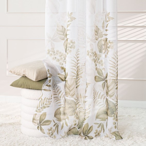 Firanka z serii zwiewnych firan z barwnym zadrukiem. Motyw suszonych liści będzie sprzyjał chwilom zadumy i refleksyjnych rozważań, wprowadzi spokojny nastrój. Nietuzinkowy wzór przyciągnie wzrok gości od samego progu mieszkania. Lekka materia firanki przepuści dużo promieni słonecznych do Twojego wnętrza.