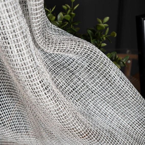 Firana o luźniej, geometrycznej strukturze siatki nawiązuje do naturalnych materiałów i sprawia, że wnętrza nabierają niepowtarzalnego charakteru. Będzie idealnym wykończeniem dekoracyjnym mieszkania utrzymanym w stylu rustykalnym, boho czy nawet przewrotnie - modernistycznym i loftowym. Nieszablonowy wygląd wprowadza nutę ekstrawagancji do mieszkania. Jej miękka struktura sprawia, że jest bardzo przyjemna w odbiorze, a mieszkanie nabiera przytulnego wyrazu.