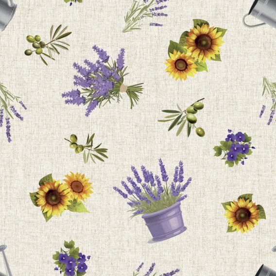 SŁONECZNIKI Z LAWENDĄ Tkanina dekoracyjna OXFORD WODOODPORNY, szer. 135cm, kolor 009 D00329/OXW/009/135000/1