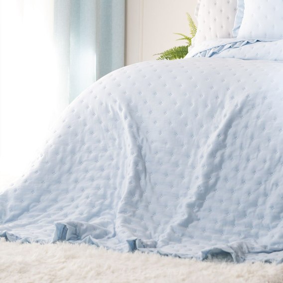 WERONA Narzuta dekoracyjna z falbaną w kropki, 170x210cm, kolor 302 baby blue WERONA/NAP/302/170210/1