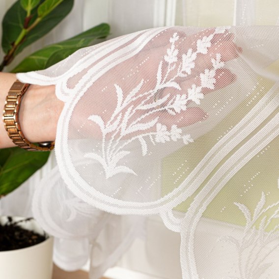 Dzięki fabrycznie przygotowanym oczkom u góry, firanka jest przystosowana do zawieszenia na mini karniszu do zazdrostek.